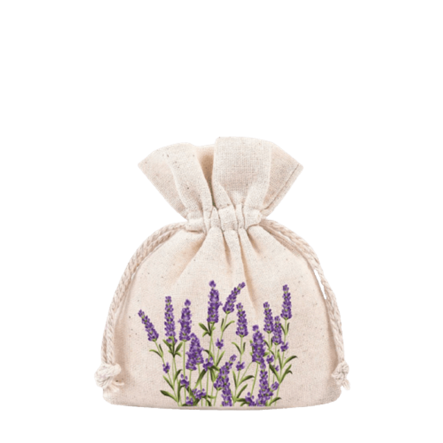 Un pochon en lin motif lavandes pour embaumer vos armoires, tiroirs et placards. Il donne à votre linge une senteur subtile et repousse naturellement les mites. Parfume aussi la voiture pour une ambiance relaxante. Dimensions : 8x10cm.